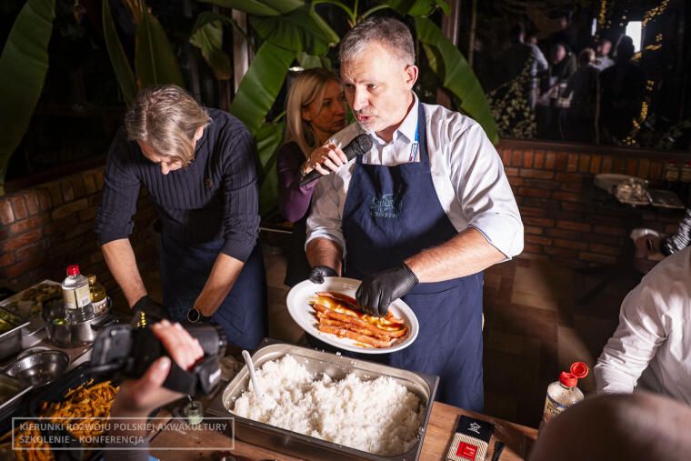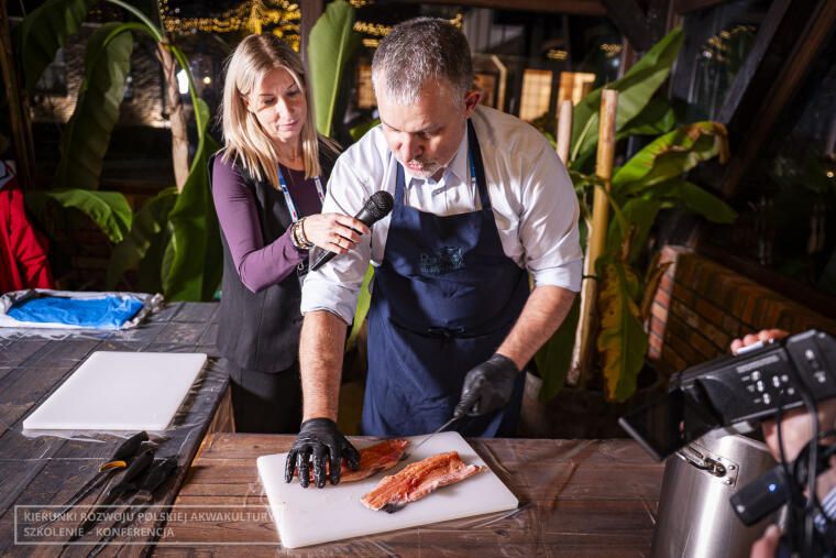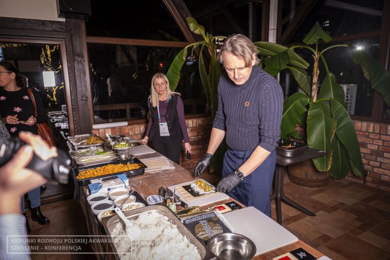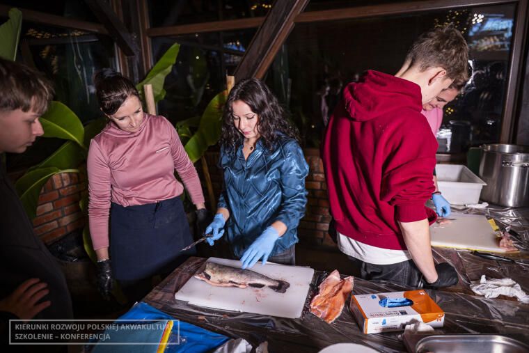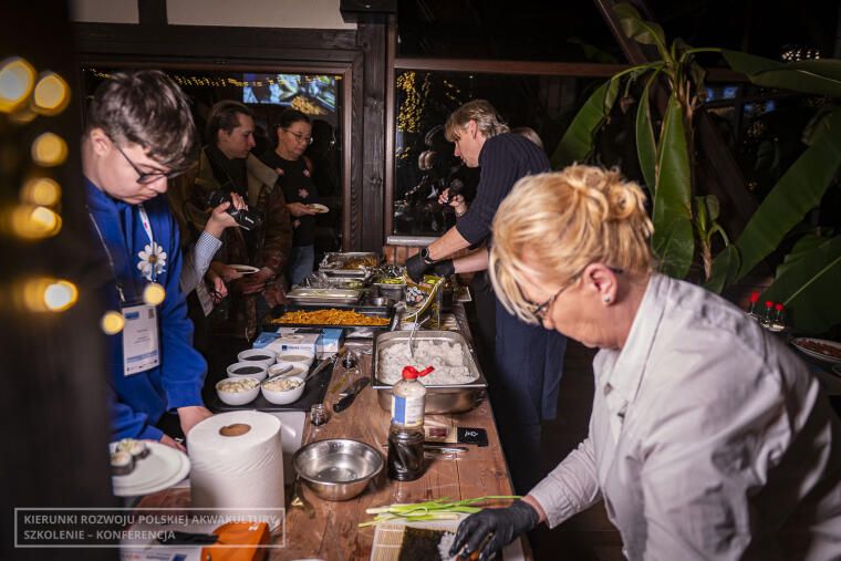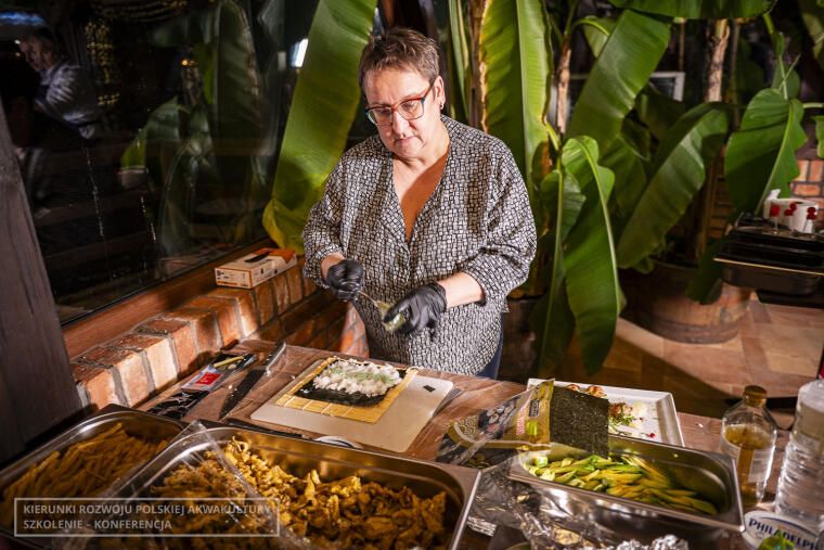 Druga grupa, czyli osoby nie zainteresowane zagadnieniami weterynaryjnymi, wzięła udział w pokazach restauracji Rybi Puzon. Zespół restauracji, na czele z właścicielem Ziemowitem Pirtaniem, zaprezentował, w jaki sposób przygotować sushi oraz sprawnie wyfiletować rybę. Wszystko transmitowane było na żywo, a uczestnicy mogli obejrzeć pokaz na dużym ekranie. Chętni mieli też okazję samodzielnie oprawić rybę oraz przygotować dania z nowej odmiany pstrąga wielkopolskiego, wyhodowanego w gospodarstwie w Tarnowie.