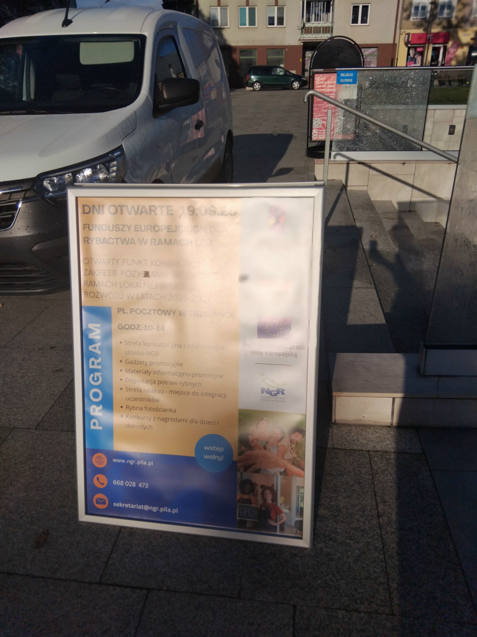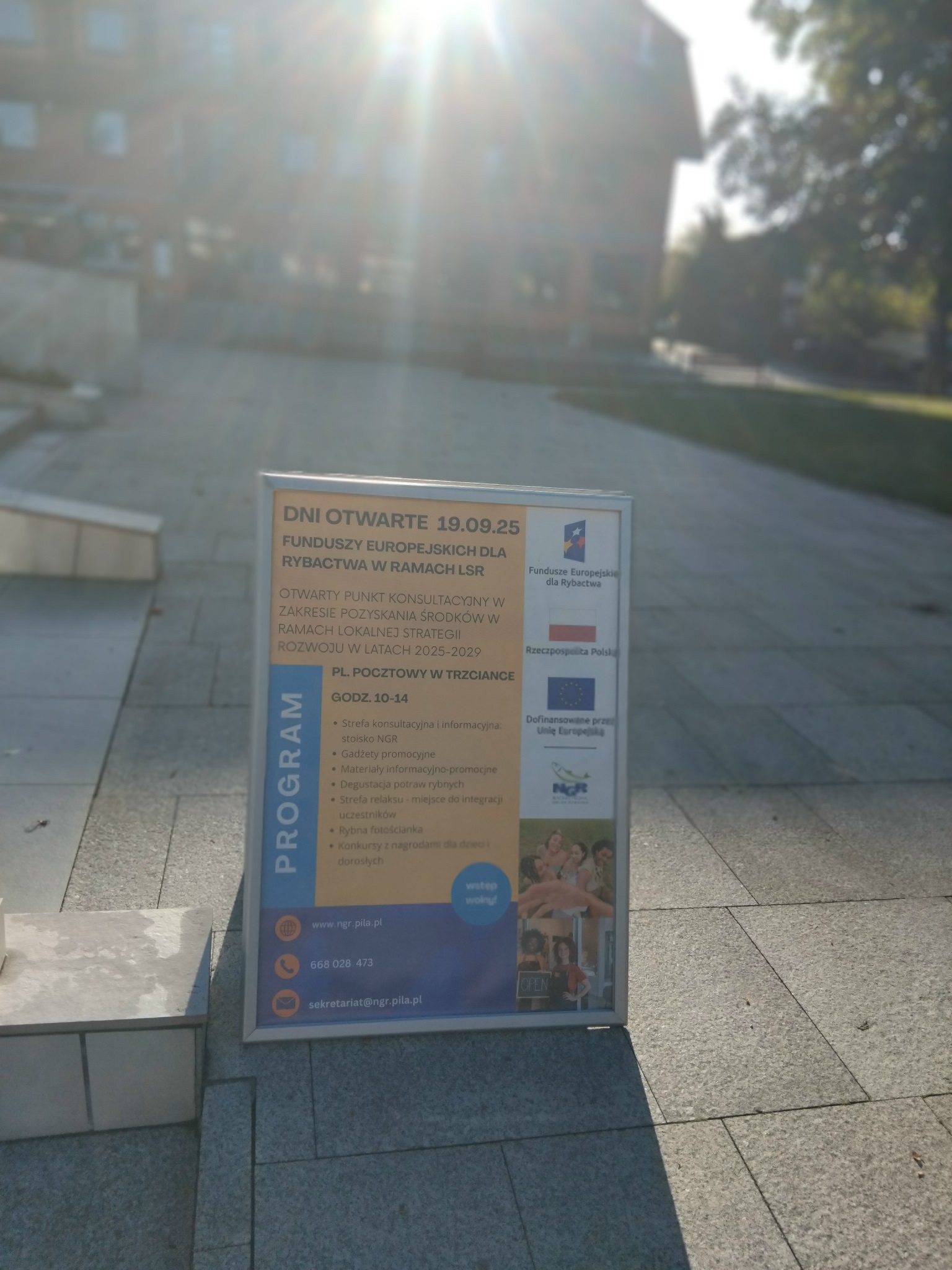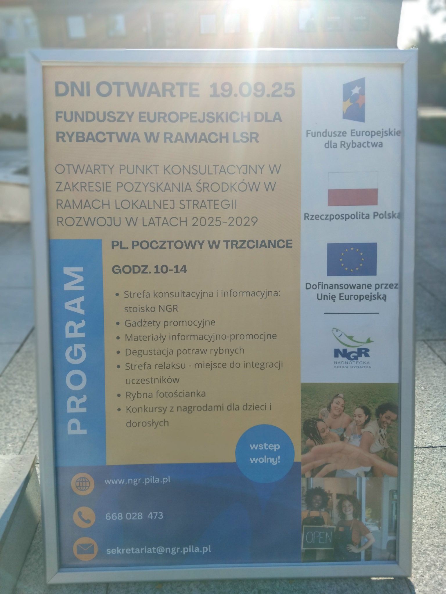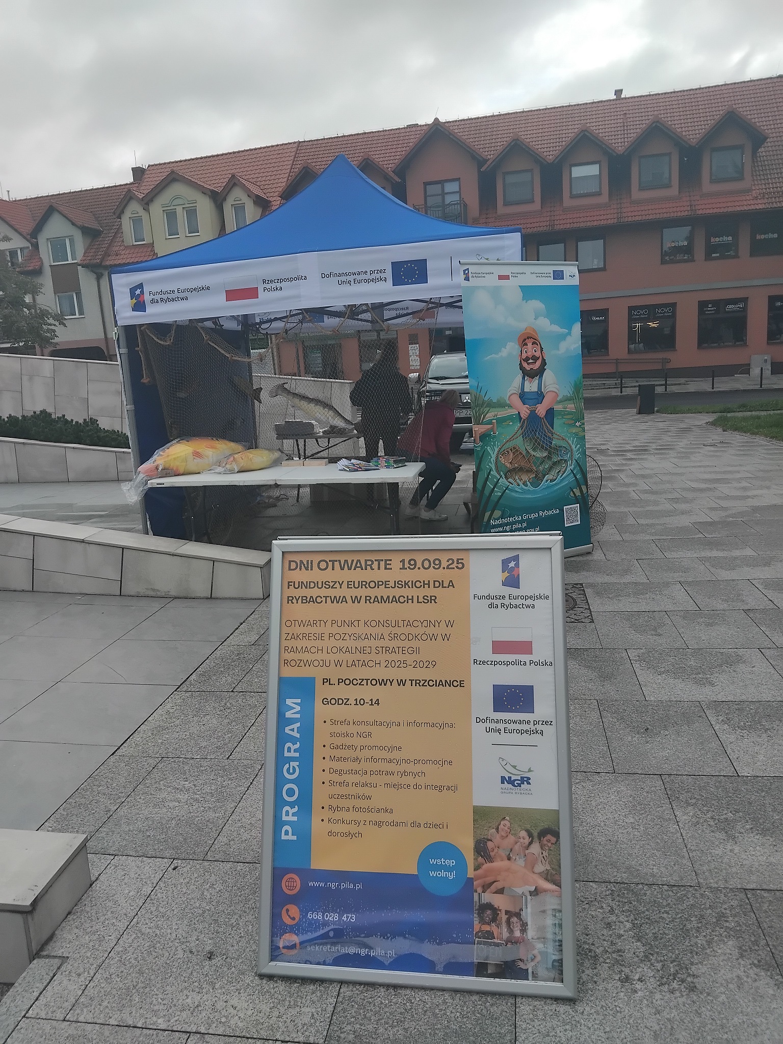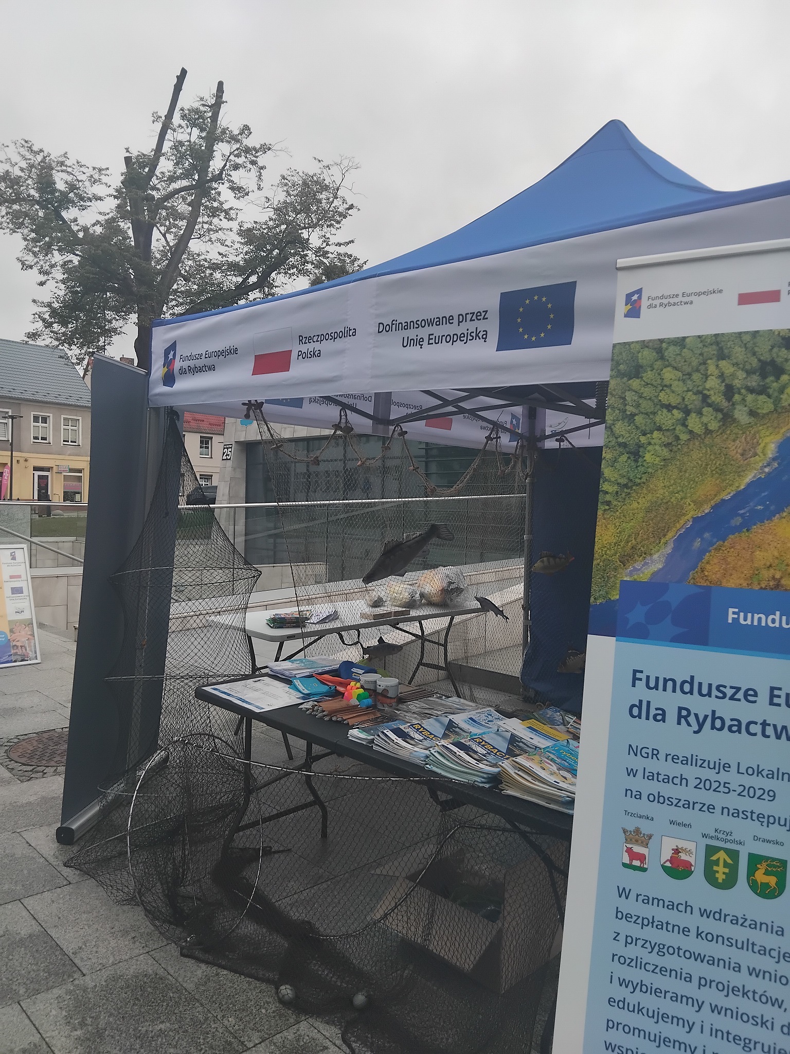 19 września 2025 r. przed Centrum Integracji Społecznej w Trzciance na stoisku zorganizowaliśmy otwarty punkt konsultacyjny, na którym udzielaliśmy informacji w zakresie możliwości pozyskania wsparcia w ramach Lokalnej Strategii Rozwoju Nadnoteckiej Grupy Rybackiej na lata 2025-2029.