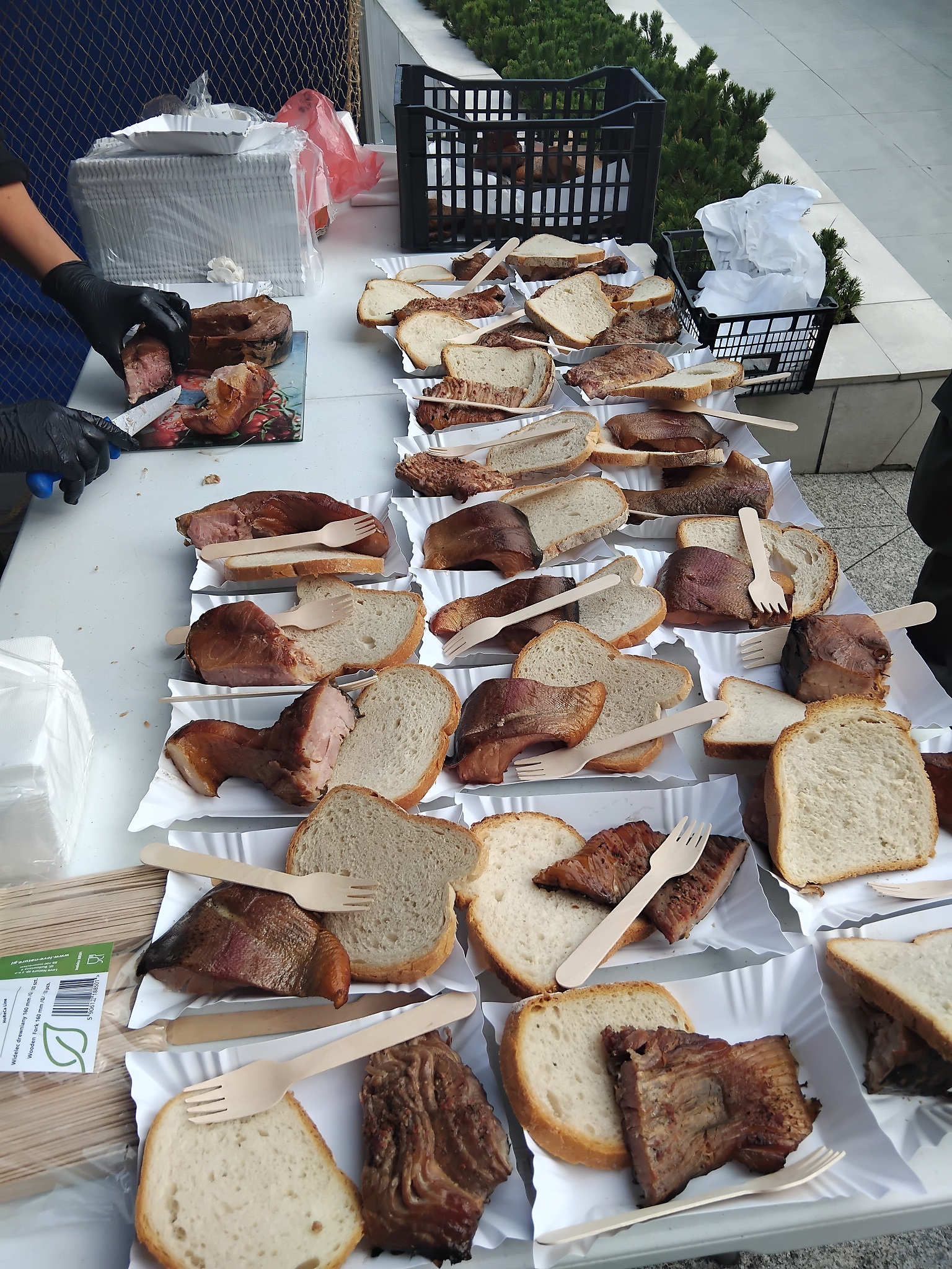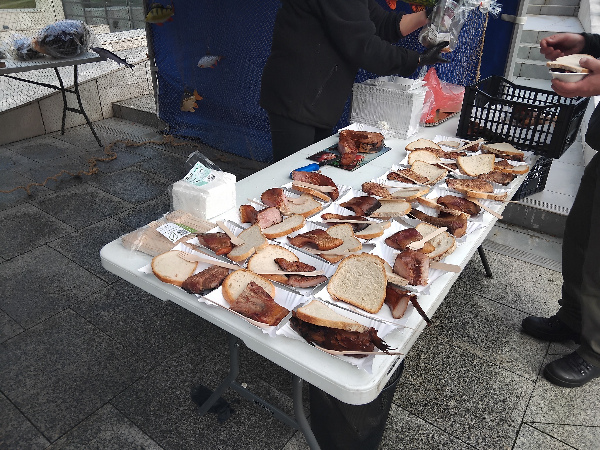 Największym jednak zainteresowaniem cieszyły się rozdawane ryby – wędzone pstrągi i karpie, które przygotował lokalny rybak pan Wojciech Rożek.