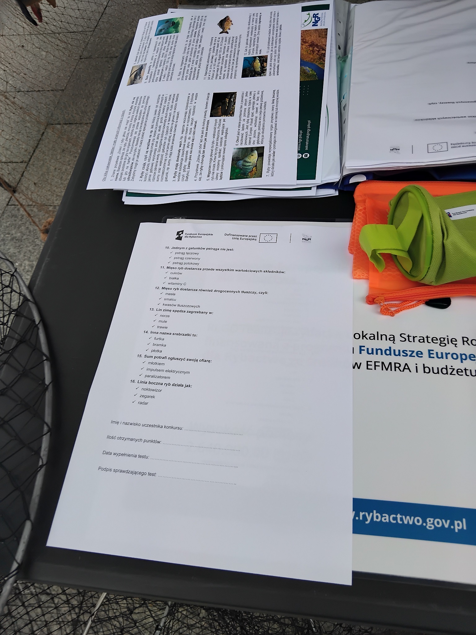 W drugiej połowie dnia punkt zaczęły odwiedzać wracające ze szkół dzieci i młodzież, które zapraszaliśmy do wypełnienia testu wiedzy o rybach słodkowodnych, będącego naszym sztandarowym punktem podczas wszystkich wydarzeń promocyjnych i informacyjnych. Tutaj podobnie – za wszystkie prawidłowe odpowiedzi można było wybrać sobie prezent.