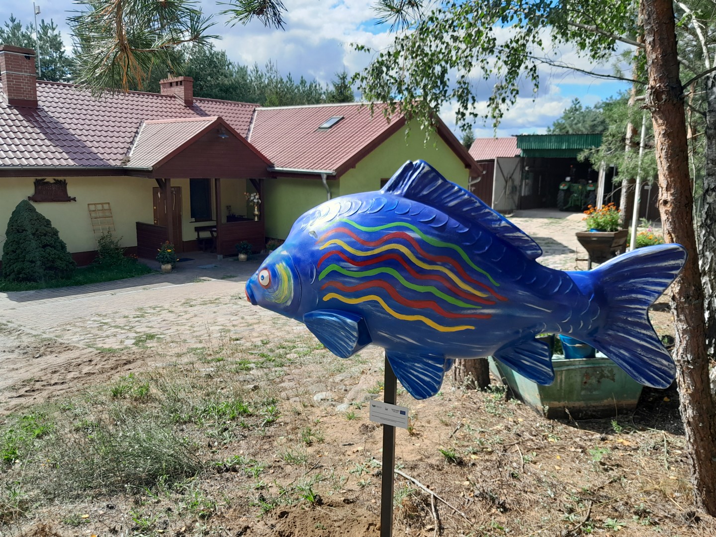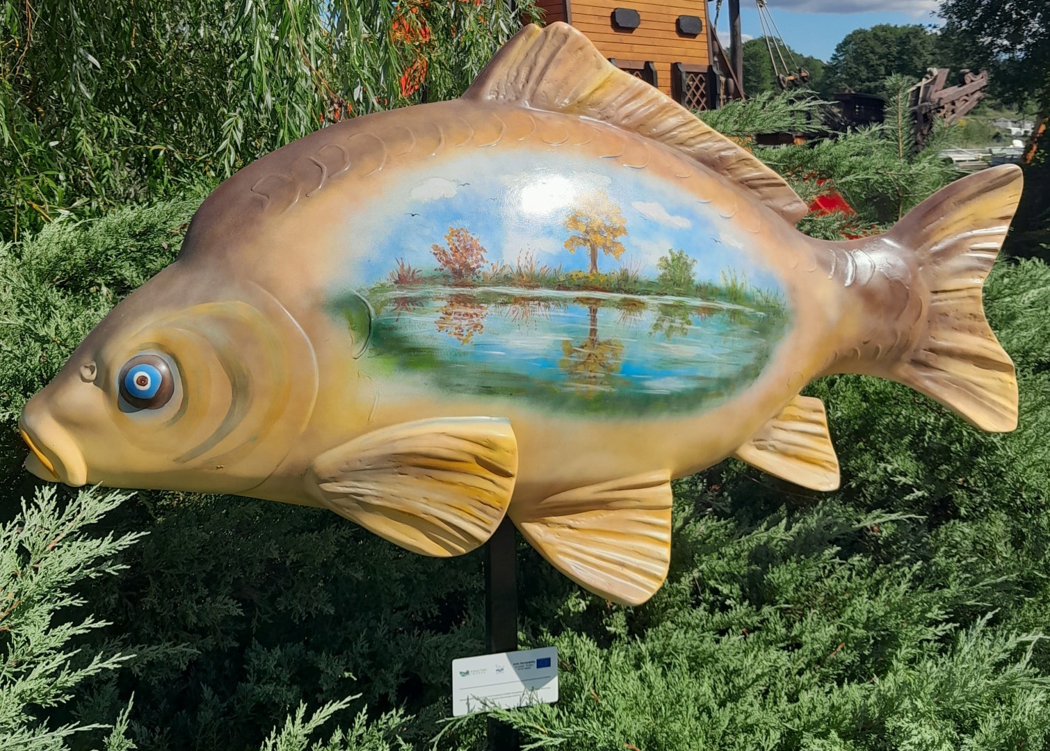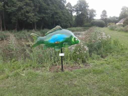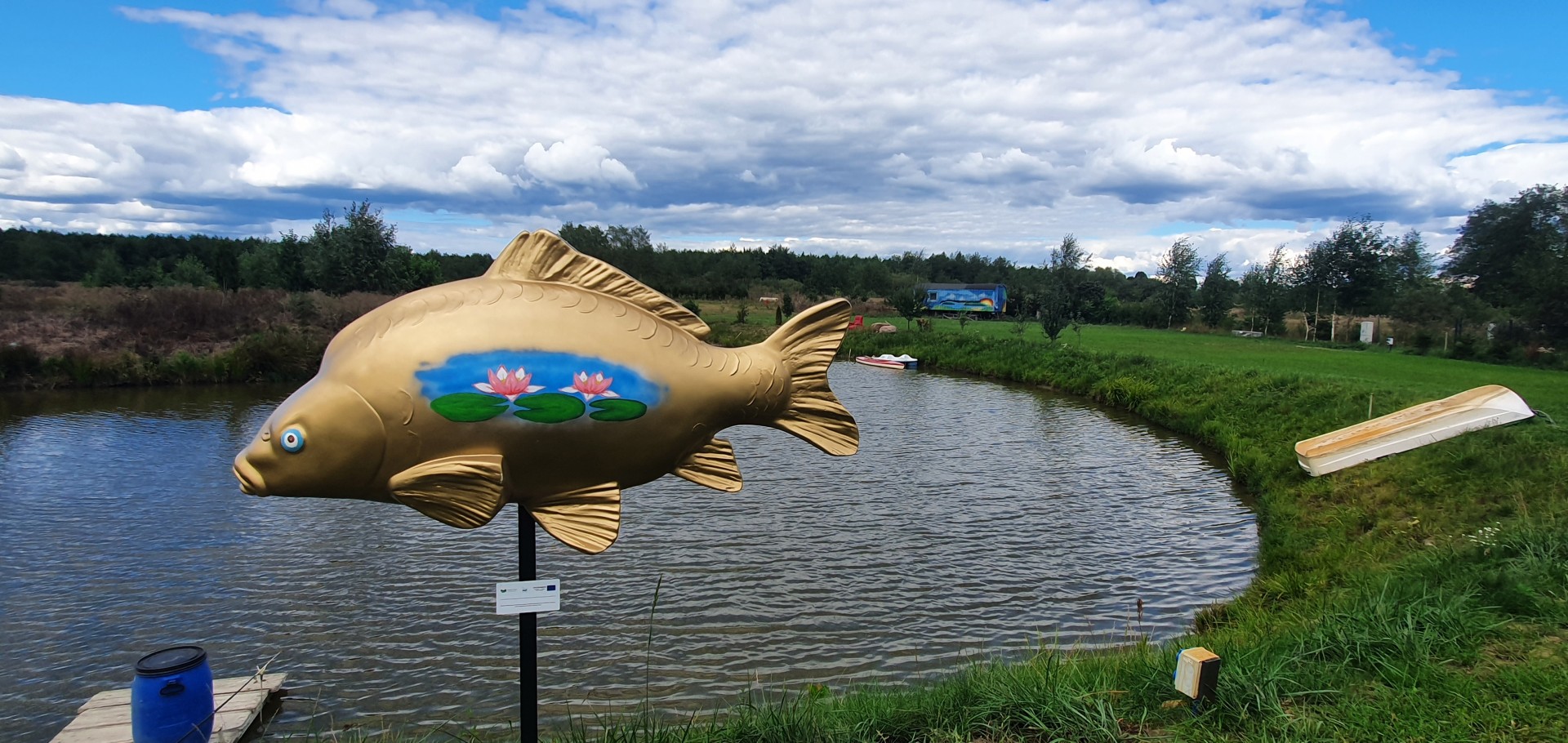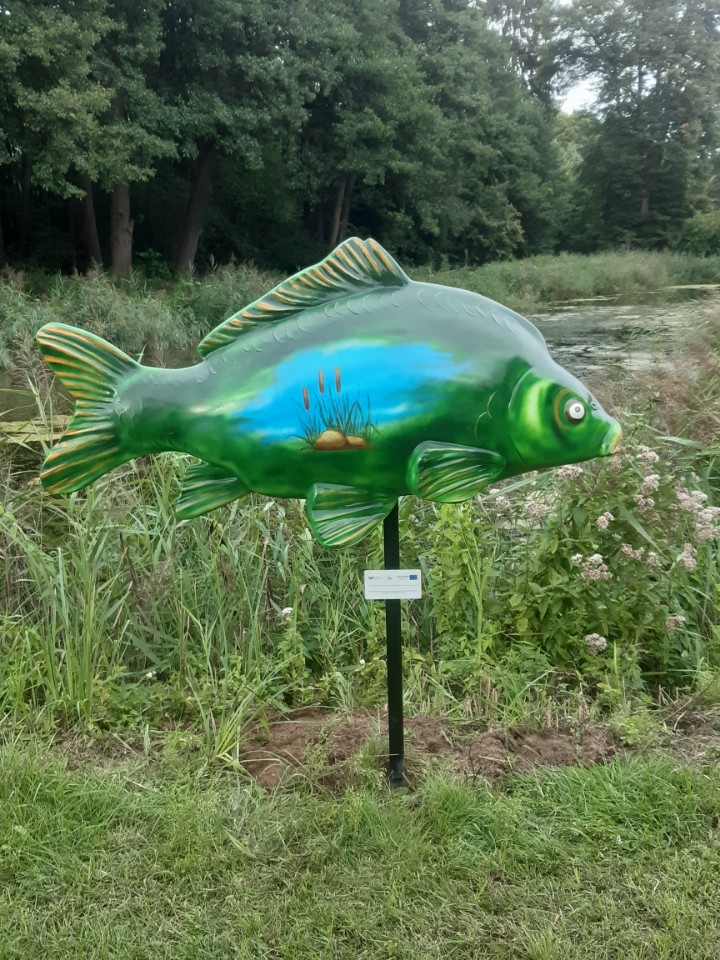 Pod koniec sierpnia 2022 r. na terenie siedmiu gospodarstw rybackich z naszego obszaru zamontowano figury ryb – duże karpie, wykonane z żywicy.