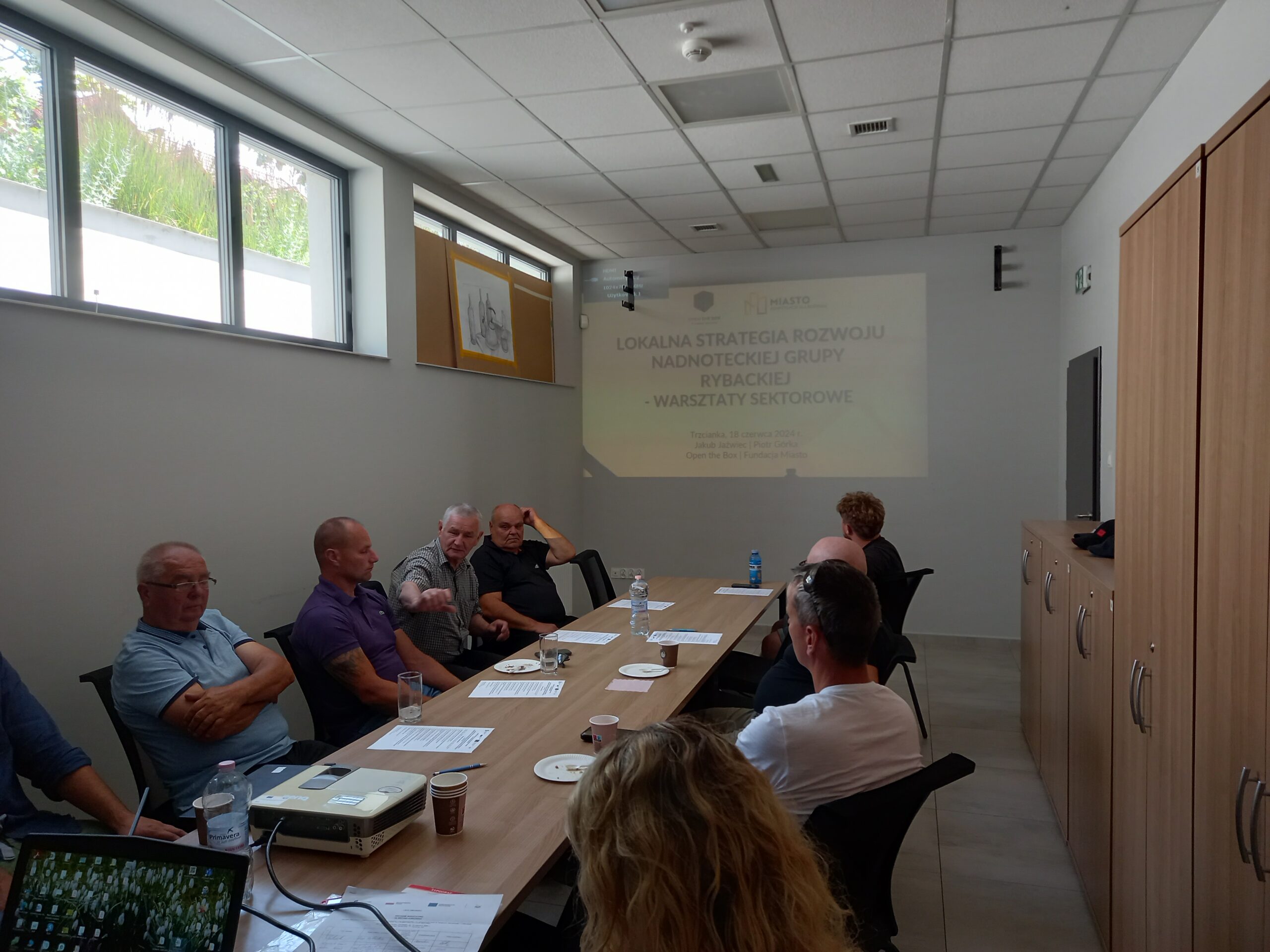 W dniu 18 czerwca miało miejsce spotkanie sektorowe dla rybaków z obszaru objętego nową LSR wdrażaną w ramach programu Fundusze Europejskie dla Rybactwa na lata 2021-2027. Udział w nim wzięli przedstawiciele branży rybackiej, prowadzący różne formy tej działalności: karpiarze, pstrągarze, producenci narybku jak i ryby konsumpcyjnej, wylęgarnie, przetwórnie, restauracje rybne, użytkownicy jezior. Podczas spotkania wspólnie wypracowano cele główne, które wg opinii branży rybackiej powinny być wspierane w LSR, ustalając ich hierarchię, doprecyzowano też cele uzupełniające, zgodnie z rozporządzeniem w sprawie operacji w ramach priorytetu 3. Rybacy pomogli także określić problemy występujące w branży, wskazując przede wszyskim na kwestie związane z brakiem możliwości zatrudnienia pracowników do prac w godpodarstwach, suszą hydrologiczną, kłusownictwem i szkodnikami rybackimi będącymi gatunkami pod ochroną, zbytnią biurokracją dotyczącą uzyskiwania pozwoleń na prowadzeniem tego rodzaju działalności. Przedstawiciele Fundacji Miasto dopytali także rybaków o inne ważne kwestie związane z prowadzeniem działalności rybackiej w tym szanse na rozwój, ryzyko marginalizacji tej branży, rybackie dziedzictwo kulturowe, spożycie ryb przez społeczeństwo, promocję itd. Dzięki informacjom uzyskanym podczas spotkania możliwe będzie m. in. sprecyzowanie celów i przedsięwzięć w ramach LSR oraz opisanie części 2.5 w LSR pt. CHARAKTERYSTYKA RYBACKOŚCI OBSZARU REALIZACJI LSR, która dodatkowo zostanie uzupełniona o dane liczbowe.