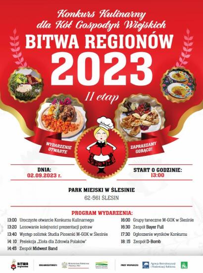 Serdecznie zapraszamy do udziału w II etapie konkursu kulinarnego dla Kół Gospodyń Wiejskich "Bitwa regionów" (półfinał województwa wielkopolskiego), w którym będą brały udział KGW, które wygrały eliminacje powiatowe. Do rywalizacji stanie 31 zespołów.