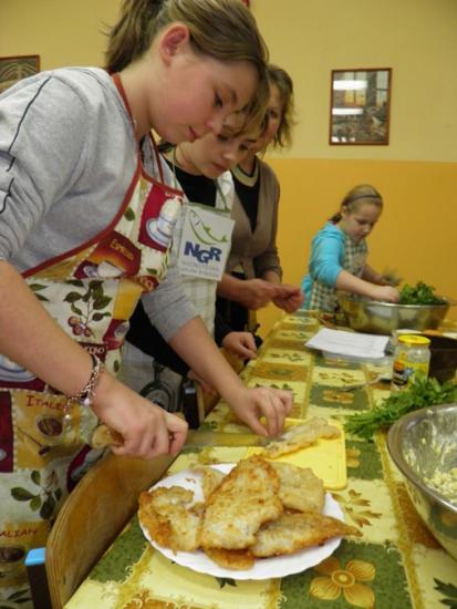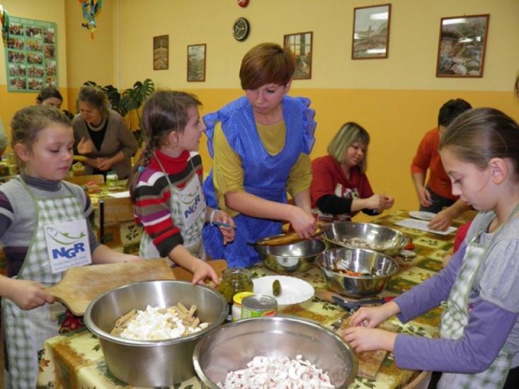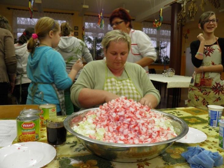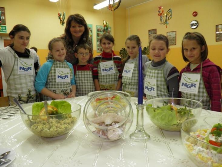 W Zespole Szkół w Starej Łubiance odbyła się kolejna impreza w ramach projektu „Ryby maja głos”. Tym razem były to warsztaty kulinarne, w których wzięli udział uczniowie, ich rodzice i nauczyciele. Tematem warsztatów były sałatki z dodatkiem ryb. Uczestnicy przyrządzili „Sałatkę dyplomatyczną” ze smażonym dorszem i ryżem curry, „Sałatkę z makreli wędzonej” z makaronem, pieczarkami i warzywami oraz sałatkę z dodatkiem paluszków krabowych na bazie kapusty pekińskiej. Jeden z zespołów przygotował też pyszne kotleciki rybne. Warsztatom towarzyszyła też wystawa literatury kulinarnej.