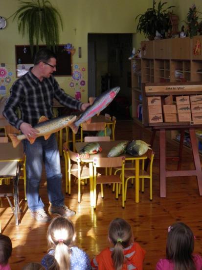 Pierwszą wizytę złożyliśmy 5 marca w Przedszkolu Publicznym w Człopie. Sześciolatki z grupy „Smurfy” bardzo aktywnie uczestniczyły w zajęciach, a wiedza niektórych dzieci na temat gatunków ryb i ich życia była godna podziwu. Teraz czekamy na informację, jakie imię dzieci nadały rybce, którą zostawiliśmy w przedszkolu.