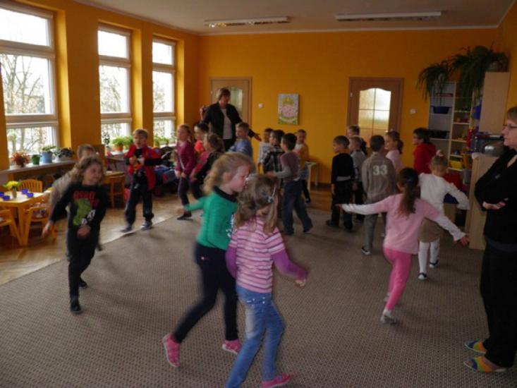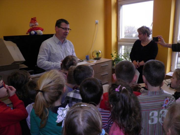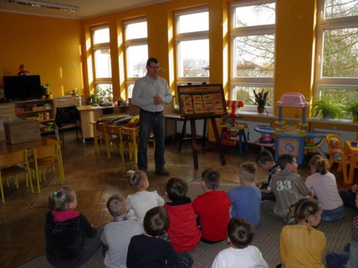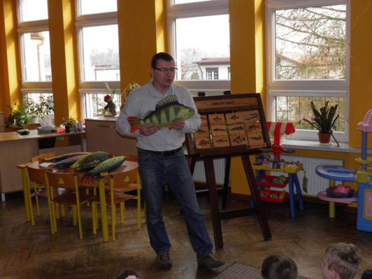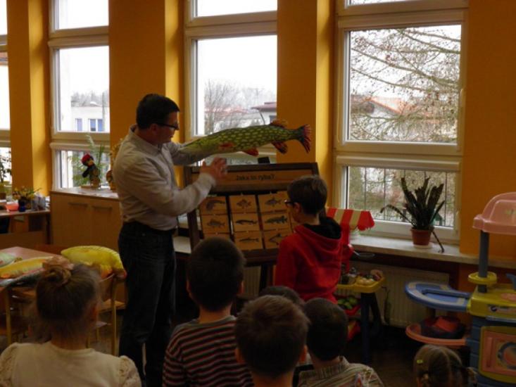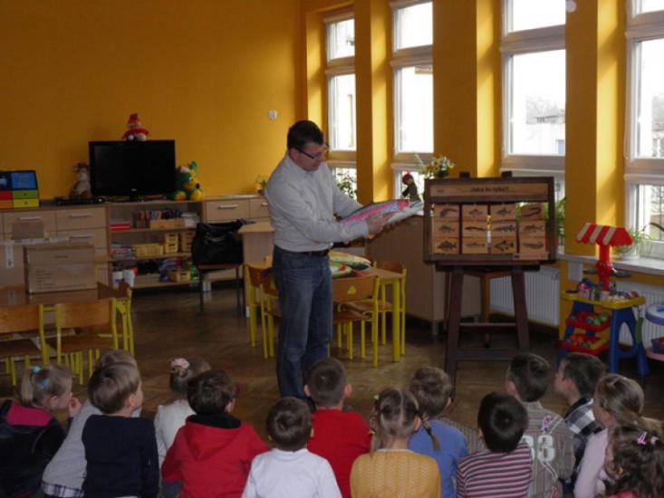 Drugie spotkanie w cyklu "NGR w przedszkolach" odbyło się w Wieleniu. Przeprowadziliśmy tam zajęcia dla najstarszej grupy z Gminnego Przedszkola. Dzieci były bardzo aktywne, chętnie odpowiadały na pytania, brały udział w zabawach, pląsach, kolorowały obrazki przedstawiające rybki, akwarium i wędkarzy, wysłuchały pogadanki o rybach, a na koniec obiecały codzienną opieką nad złotą rybką, którą - razem z akwarium i wyposażeniem - nasze stowarzyszenie podarowało przedszkolu.