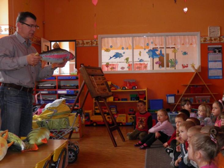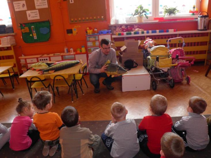 W tym tygodniu odwiedzamy kolejne przedszkola w naszym regionie. Po Człopie i Wieleniu przyszła kolej na gminę Szydłowo. Władze oświatowe gminy wskazały nam placówkę w Starej Łubiance, która mieści się w budynku Zespołu Szkół przy ulicy Polnej. Poprowadziliśmy tam zajęcia z grupą Żabki. Jak się okazało, sześciolatki zostały przygotowane do tematu już przy śniadaniu, na które podano im kanapki z pastą rybną. Był to świetny wstęp do jednego z tematu zajęć, jakim jest udział produktów rybnych w zdrowej diecie. Oprócz tego opowiedzieliśmy dzieciom o pracy rybaka oraz o gatunkach ryb dziko żyjących w naszych wodach i tych hodowanych w stawach.