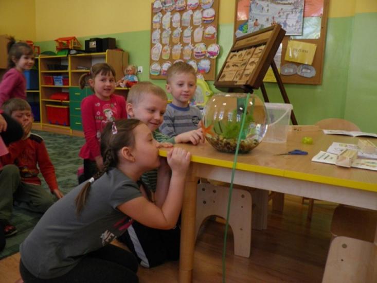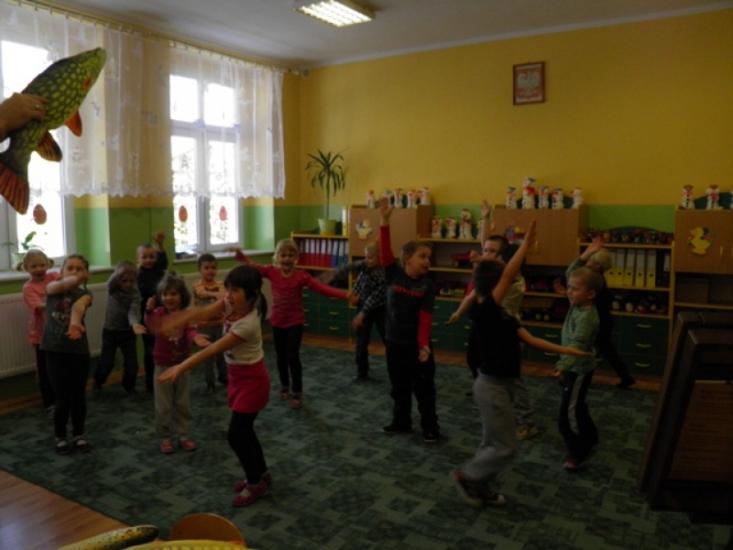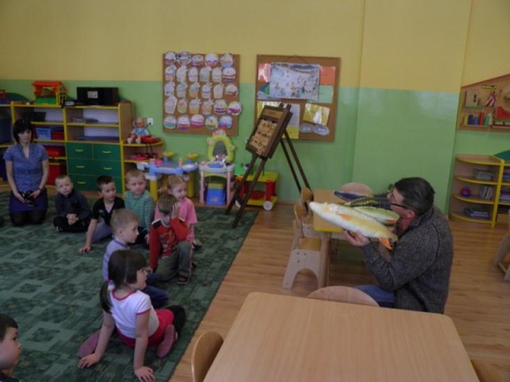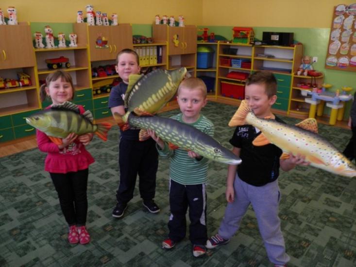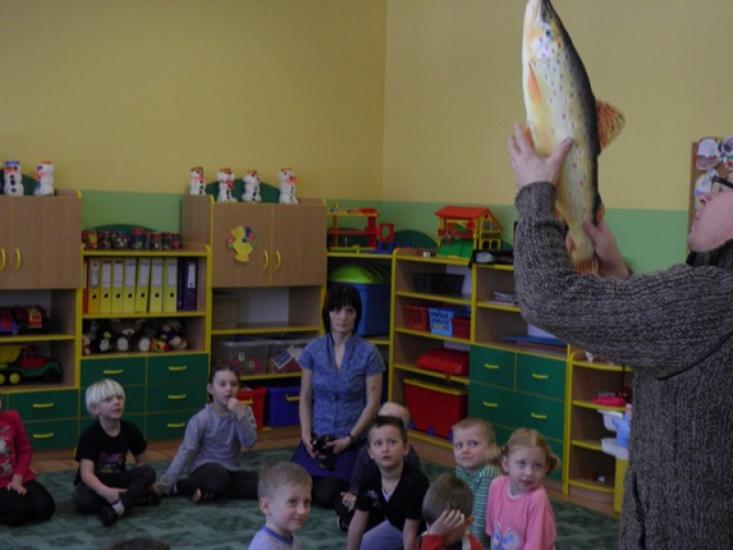 Jak zwykle przy tego typu spotkaniach, dzieci żywiołowo reagowały na nasze propozycje zabaw i gier, chętnie dzieliły się swoją wiedzą na temat ryb i z zainteresowaniem słuchały nowych informacji o życiu ryb i pracy rybaka. Sześciolatki ucieszyły też prezenty, które zostawiliśmy w placówce, a które łączą funkcję zabawową z edukacyjną: maskotki w kształcie określonych gatunków ryb, tablicę edukacyjną, tematyczne kolorowanki z kompletami kredek i wyposażone akwarium wraz z rybką.