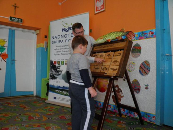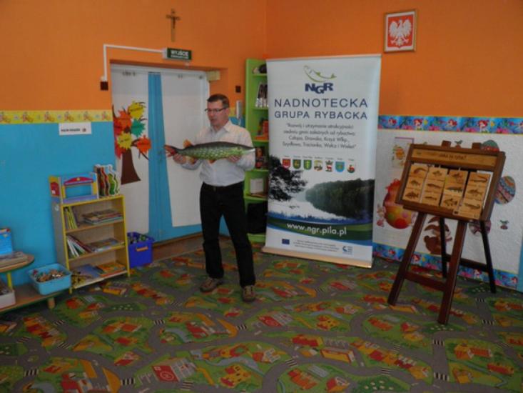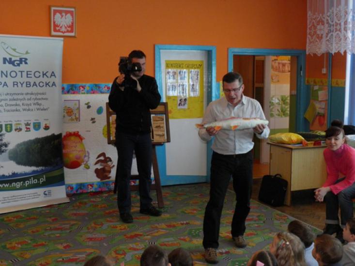 Ostatnia wizyta w cyklu „NGR w przedszkolach” odbyła się w Krzyżu Wielkopolskim. Spotkaliśmy się tam z dziećmi z grupy „Pszczółki” Przedszkola im. Marii Konopnickiej. Jak zwykle było wiele zabawy, trochę przy tym edukacji i dużo radości z prezentów, które zostawiliśmy w przedszkolu: kolorowanki, kredki, maskotki w kształcie ryb i tablicę edukacyjną.