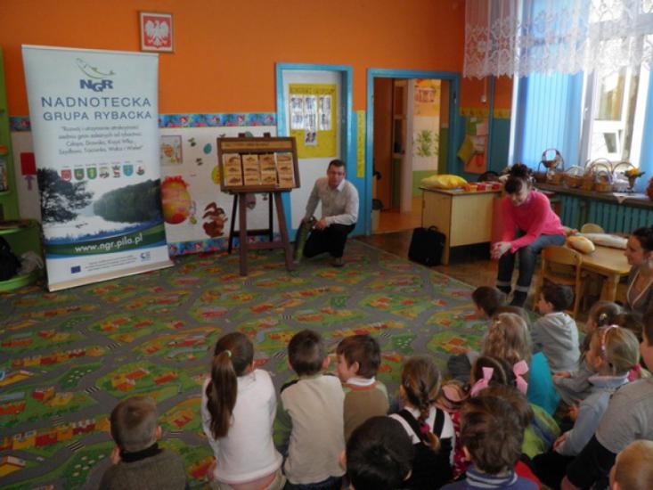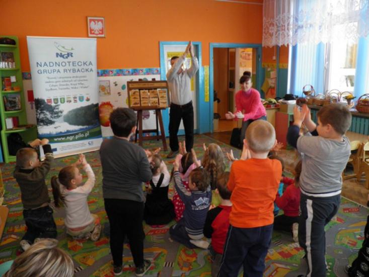 Było to ostatnie spotkanie z przedszkolakami w pierwszym etapie naszego programu „NGR w przedszkolach”. W drugiej części tego projektu zaprosimy znane nam już grupy przedszkolne na wycieczki do gospodarstw rybackich, a także kupimy im obiad z potrawą rybną w głównej roli.