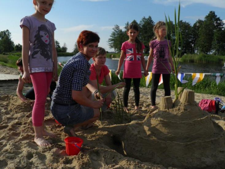 Dla dzieci przygotowano konkursu sprawnościowe z nagrodami, a całymi rodzinami budowano piękne zamki z piasku. Darmowe zabawy w kulach na wodzie cieszyły się wielkim powodzeniem, a że gorące popołudnie zachęcało do kąpieli, wiele dzieciaków skorzystało z tej okazji. Rozegrano turniej piłki siatkowej, a dla najsilniejszych panów (choć znalazła się tez jedna zawodniczka) zorganizowano zawody w podnoszeniu ciężarka.