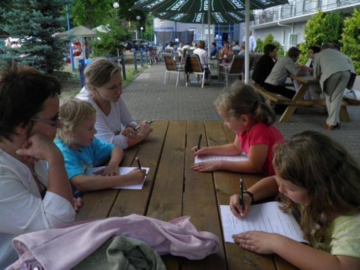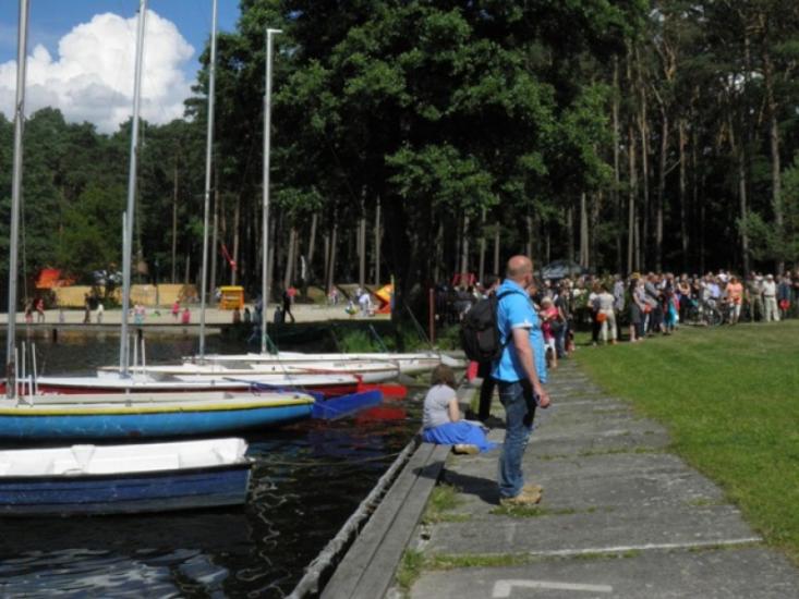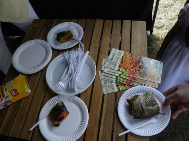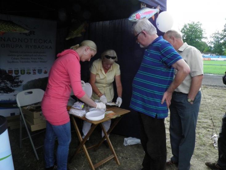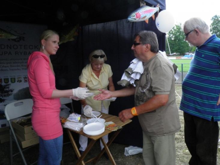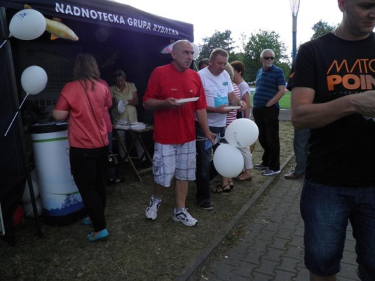 Druga, mniej już oficjalna część tego wydarzenia odbywała się przy trzcianeckim OsiRze. Na stoisku NGR można było spróbować wędzonego pstrąga (wśród uczestników festynu rozdaliśmy 500 porcji ryb), dla dzieci ustawiono dmuchańce i trampoliny, a ze sceny płynęły szanty w wykonaniu zespołu Majtki Bosmana. Pracownicy Biura NGR zorganizowali dla najmłodszych konkurs o Parku Ryb Słodkowodnych, po którym wszystkich uczestników nagrodziliśmy zestawami prezentów. Dorośli bawili się do późna przy muzyce serwowanej przez DJ-a.