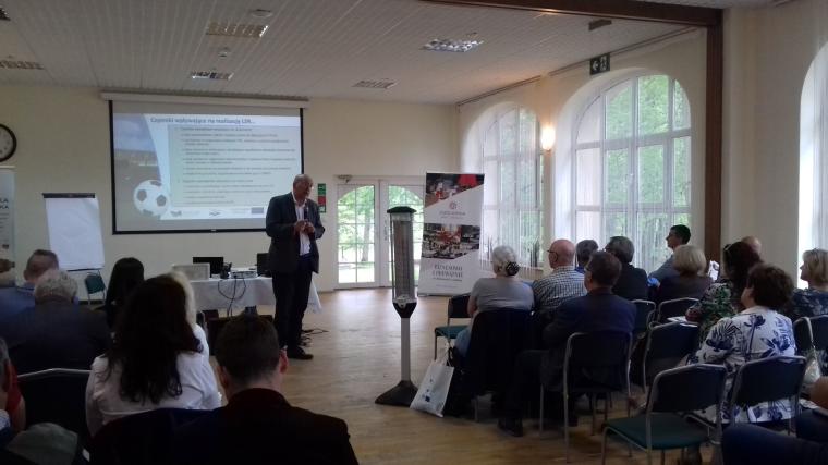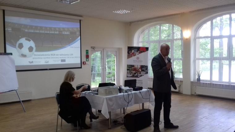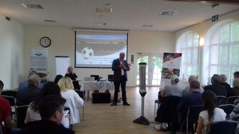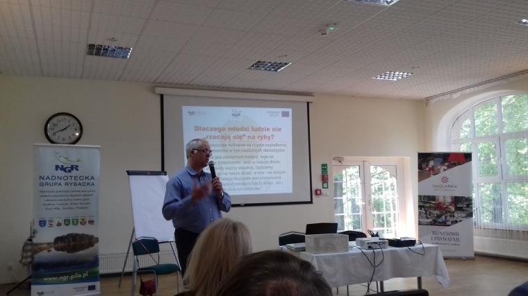 Wszystkich uczestników konferencji powitał Prezes NGR Pan Wojciech Jóźwiak, przekazując następnie głos Kierownik Biura NGR Pani Danucie Pisarskiej, która przejęła dalsze prowadzenie imprezy. Konferencja rozpoczęła się od prezentacji Kierownik Biura NGR pt. „Efekty i postępy wdrażania LSR”, w której przedstawiła informacje o wykorzystaniu środków LSR, zrealizowanych naborach wniosków o dofinansowanie, przykładach realizowanych operacji czy osiągnięciu wskaźników LSR. Następnie twórca raportu ewaluacyjnego LSR Pan Piotr Jaworski przedstawił wyniki, przeprowadzonej przez siebie, okresowej ewaluacji LSR za lata 2016-2018. Po przerwie obiadowej wykład na temat marketingu w gospodarstwach rybackich przeprowadził Pan Zbigniew Szczepański, przedstawiciel Towarzystwa Promocji Ryb „Pan Karp”, opowiadając o możliwościach i przykładach promocji ryb oraz popularyzacji ich spożycia.