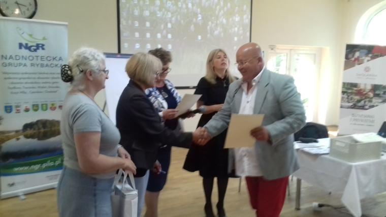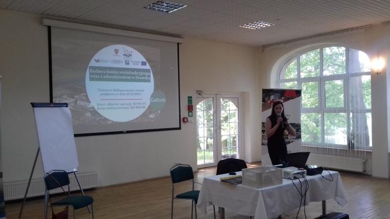 - przedstawiciel Gminy Drawsko Pani Hanna Matkowska opowiedziała o trzech projektach pt. „Budowa boiska wielofunkcyjnego wraz z odwodnieniem i oświetleniem przy Szkole Podstawowej w Drawsku – budowa infrastruktury turystyczno-rekreacyjnej w Gminie Drawsko”, Święto Noteci- Marina Yndzel Drawsko 2019” oraz „Konkurs edukacyjny - plastyczny "Dzieci i Ryby głos mają"”.