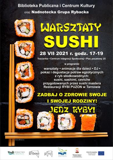 Nadnotecka Grupa Rybacka wspólnie z Biblioteką Publiczną i Centrum Kultury im. Kazimiery Iłłakowiczówny w Trzciance zaprasza na Warsztaty SUSHI, które odbędą się 28 lipca 2021 r. od godz. 17:00 na terenie Centrum Integracji Społecznej w Trzciance przy Placu Pocztowym 25. Wydarzenie ma charakter otwarty.