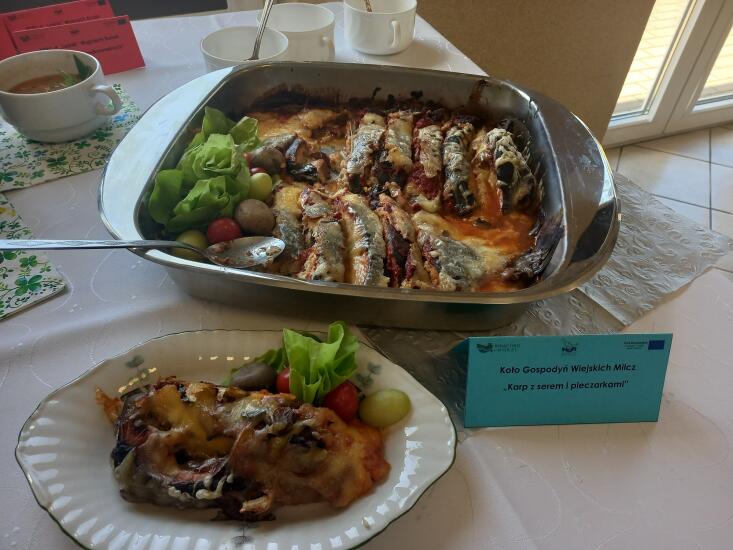 - Karp z serem i pieczarkami - wykonany przez Koło Gospodyń Wiejskich Milcz